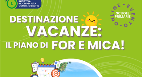 Il ciclo “Le avventure di For e Mica” si conclude con l’ultimo appuntamento in programma lunedì 18 maggio, alle ore 11, “Destinazione vacanze: il piano di For e Mica”. L’incontro, organizzato dal Museo del Risparmio, sarà dedicato a come organizzare le proprie attività e gestire il tempo in modo efficace. ...