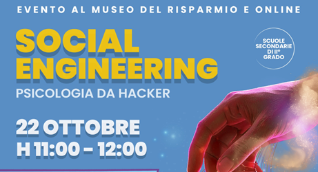 In occasione del Mese della Cybersecurity, il 22 ottobre alle 11 l’evento “Social engineering. Psicologia da hacker” dedicato alle scuole secondarie di II grado
