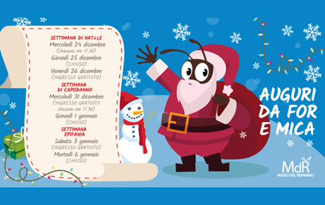 In occasione delle festività natalizie, MdR offre ai visitatori tre giornate a ingresso gratuito: 26 e 31 dicembre, 3 gennaio.