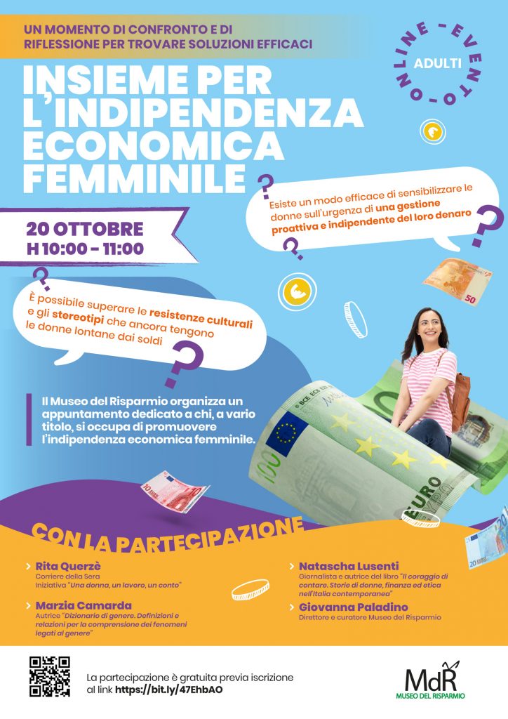 Lunedì 20 ottobre, alle ore 10, il Museo del Risparmio propone un incontro rivolto a chi si impegna, in diversi ambiti, a sostenere l’indipendenza economica delle donne, con l’obiettivo di scambiare idee, stimolare riflessioni e promuovere il networking e la condivisione.